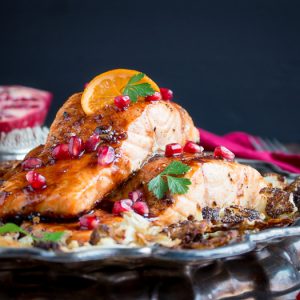 However, one of the reasons why we love it as it celebrates seasonal produce of oranges and pomegranates and is a gorgeous holiday meal. If you like the little savory and sweet combination of this fish recipe, you will also enjoy our Pineapple Glazed Salmon and salmon bites.