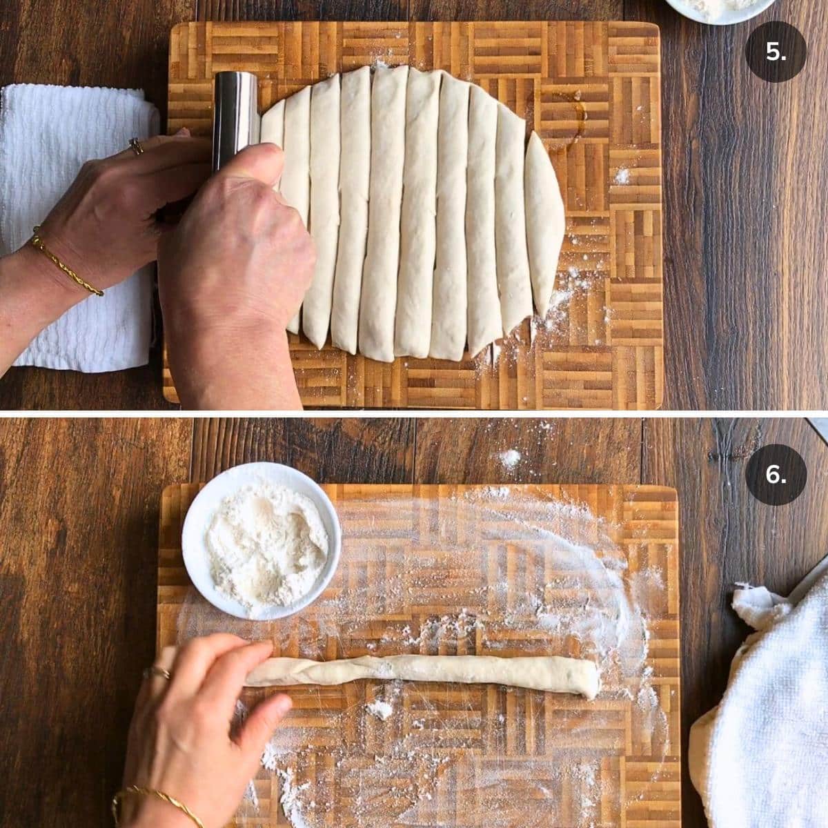 - With a knife or a pastry cutter, cut dough into long vertical ½ inch slices.