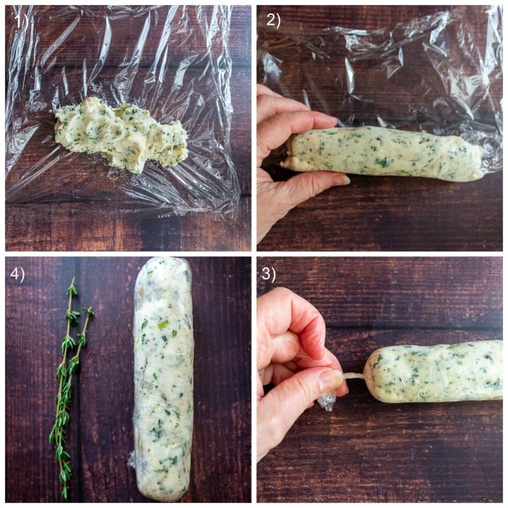 One of our favorite ways to serve compound butter is in a log shape at the table. It is a pretty way to serve it up to guests.