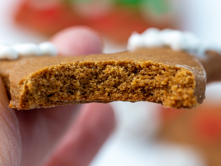 Don't you just love a cookie that has little crispy ends but a chewy center? The addition of deep rich molasses and brown sugar that makes for those delectable crispy ends and chewy center of the cookies. If you love a good chewy cookie, be sure to try our easy gluten free and vegan Chewy Black Sesame Cookies and our Chewy Mandarin Orange Cookies for your holiday baking. The best part of this biscuit recipe is that the cookie dough does not puff up too much during the baking process. The cutout gingerbread men and women cookies keep their cute shape and are ready for decorating.