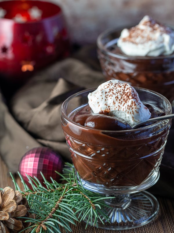 Topping with sugared cranberries is also a nice touch around the holidays. Now this is our kind of microwave Christmas pudding but really it can eaten all year around. Check out our Velvety Vegan Chocolate Mousse ,if you would like to try a mousse rather than a pudding. Both are decadent.