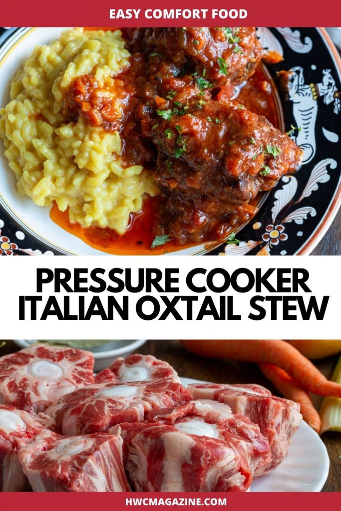 Fall off the bone tender Pressure Cooker Oxtail Stew is the world's easiest Italian comfort food. Beef oxtail osso buco is seared, braised in a red wine tomato sauce in the Instant Pot and topped in gremolata.