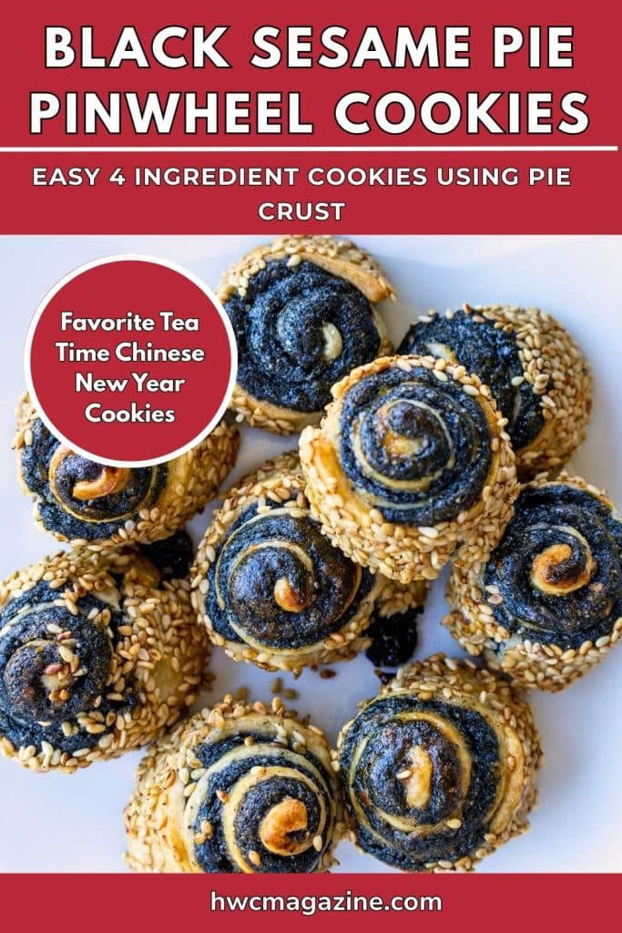 Need a last-minute teatime treat? These easy five ingredient Black Sesame Pie Crust Pinwheel Cookies are flaky outside and chewy inside with a sweet nutty flavor. To save time, we used store bought pie crust to make this easy pinwheel cookie recipe in just 30 minutes. Perfect for Chinese New Year or any gathering you want a sweet treat. Make them ahead or freeze them to keep holiday prep simple.